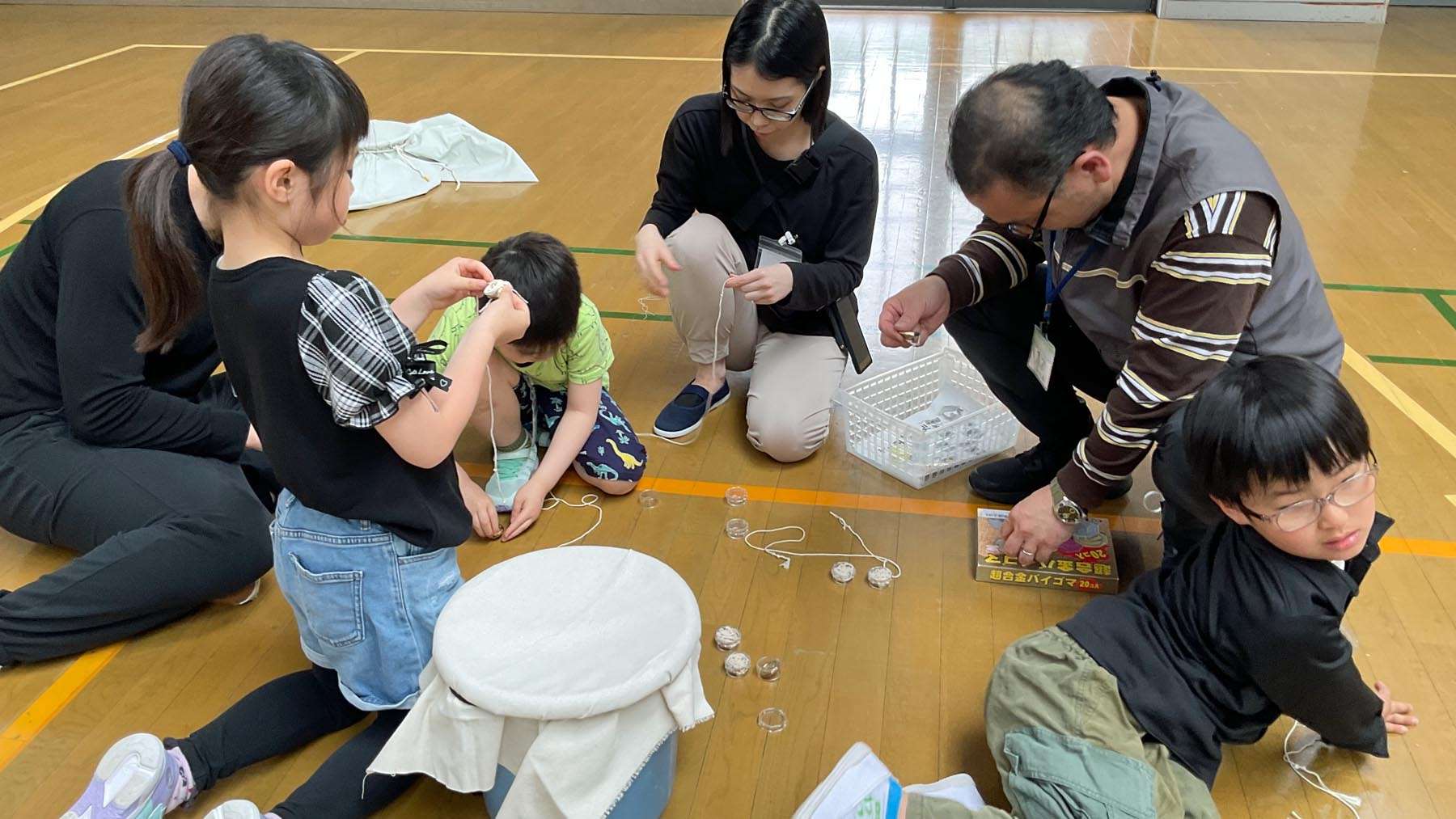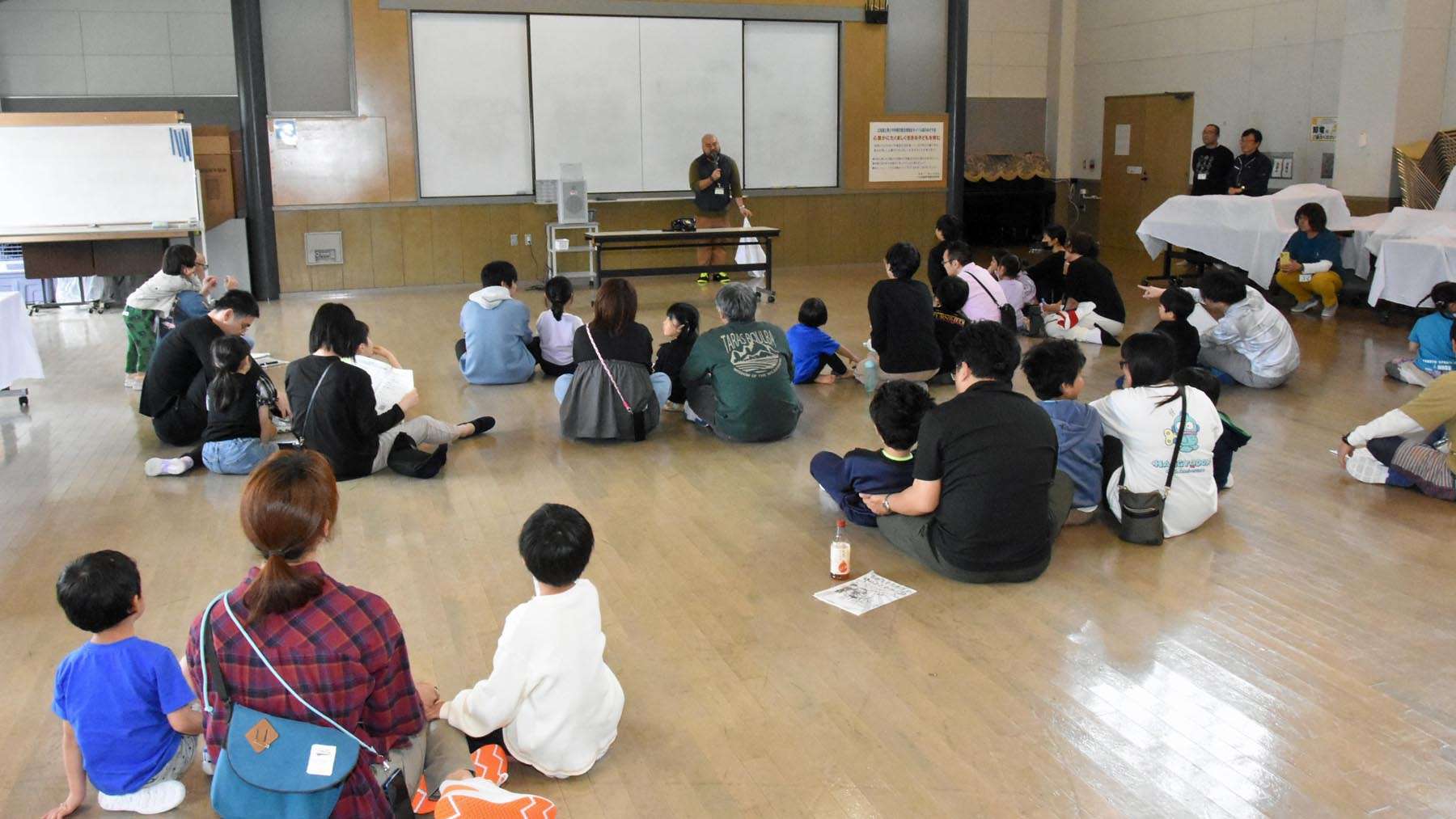 こんな、「モノ」を知る時間から、会場を体育館に移して、「遊んでみよう」の時間に。