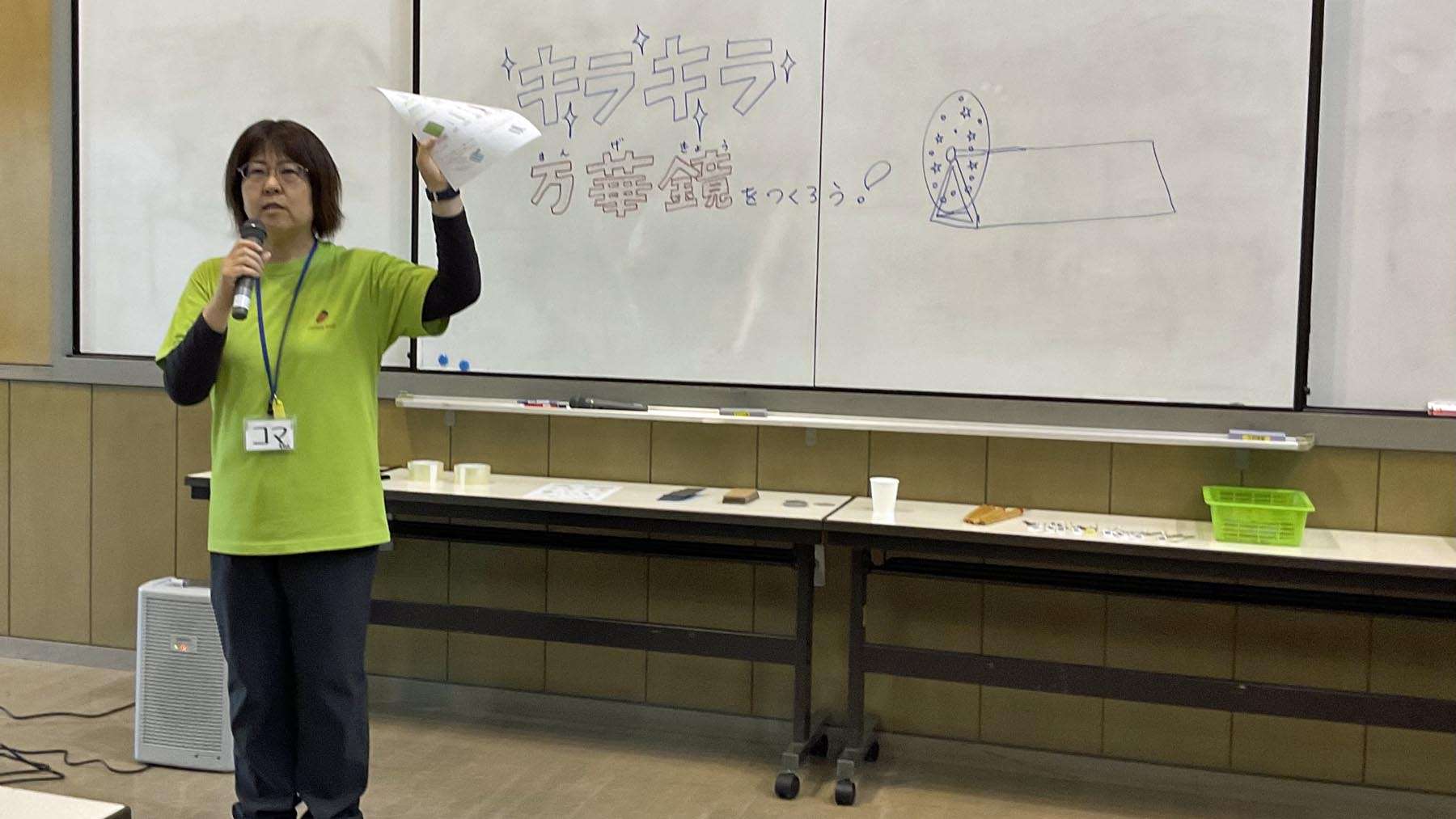今回の万華鏡は、チョット工夫して筒の中に入れてみるとか、飾り部分を円盤から飾りが転がるようにするなど工夫ができます。ぜひ、挑戦してみてくださいね。