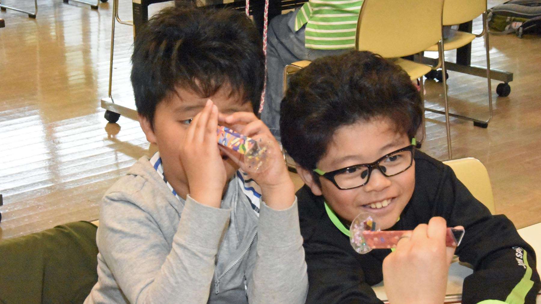 出来上がった万華鏡を覗き込む子どもたちの顔が、また良いんです。