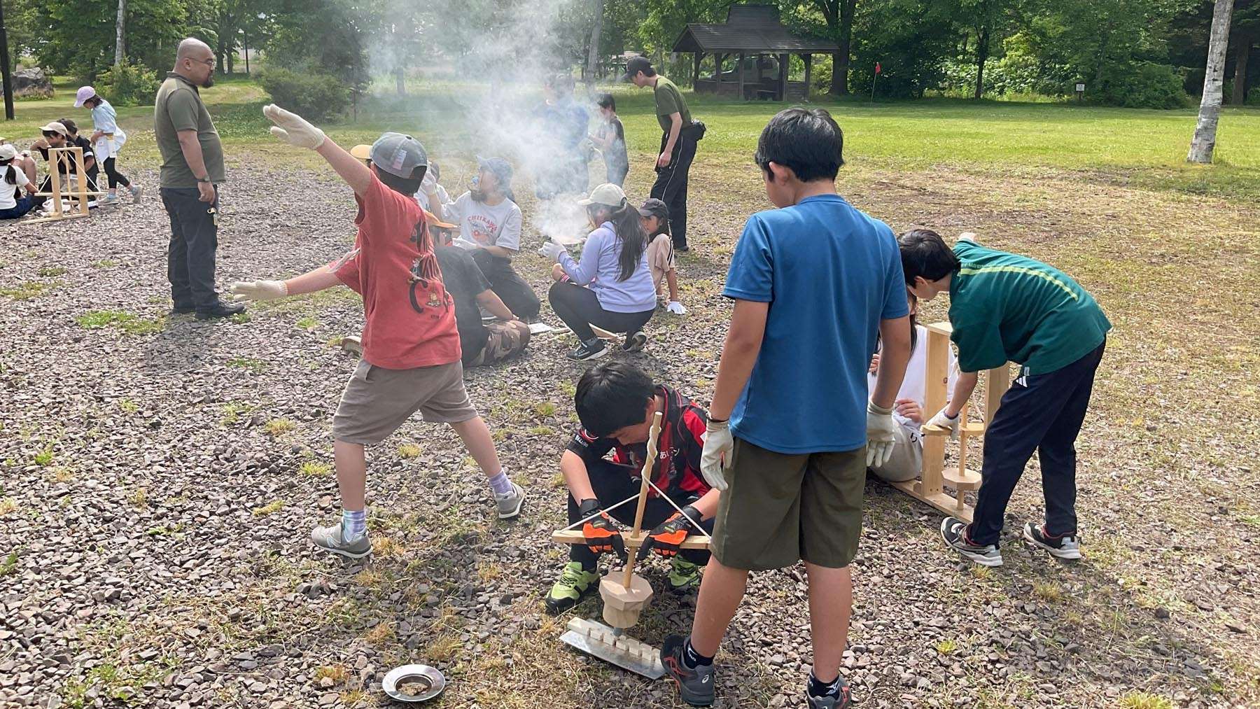 すべての班で火起こしが成功して、大切な大切な「火」を手に入れました。