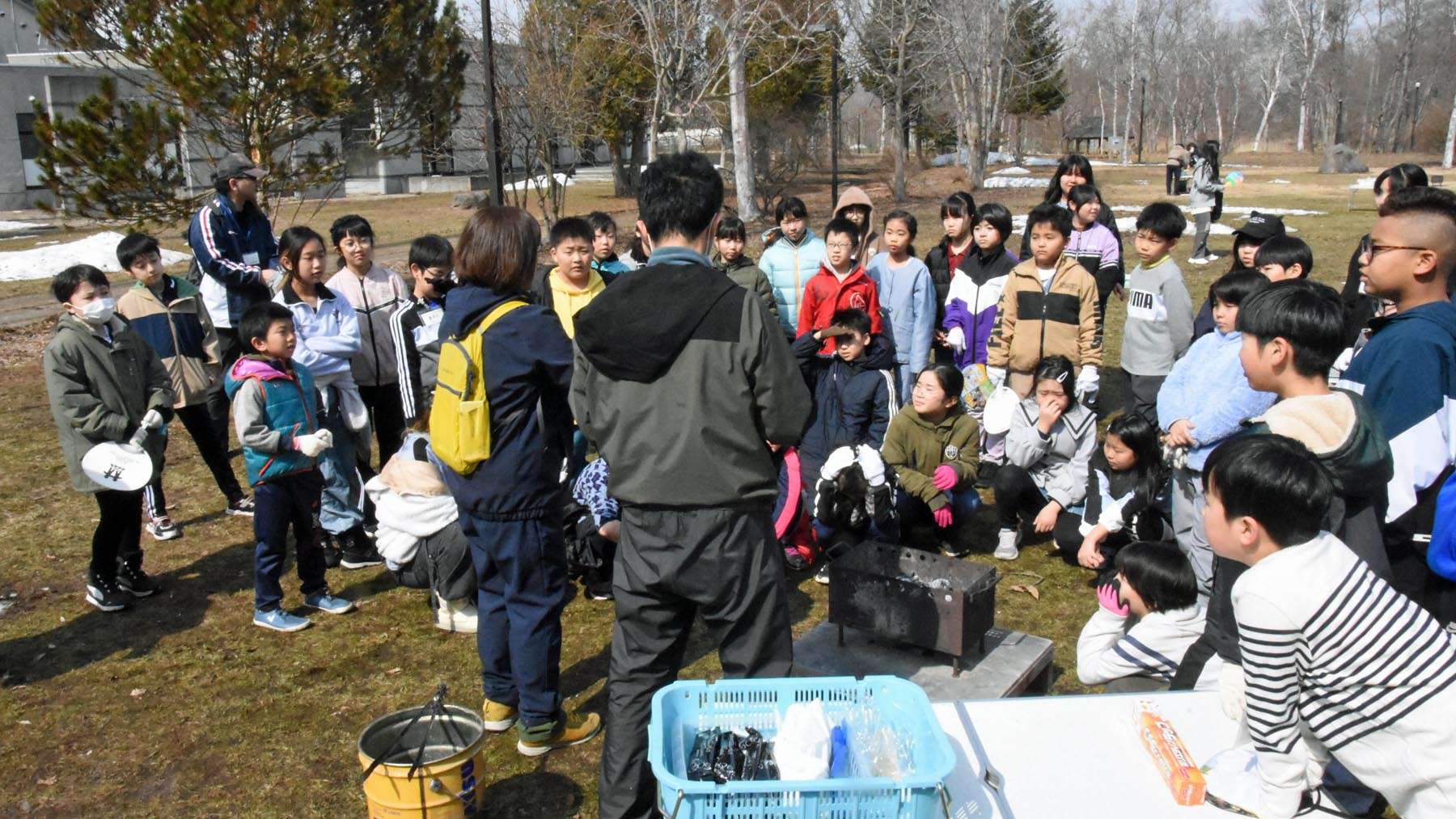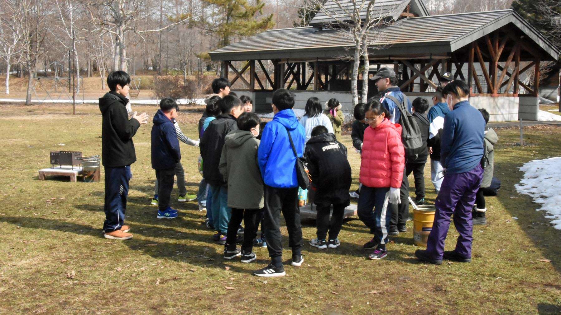 この日は、朝食の後、布団をたたんだり部屋掃除をした後、さっそくキャンプサイトに子供たちが集まっていました。