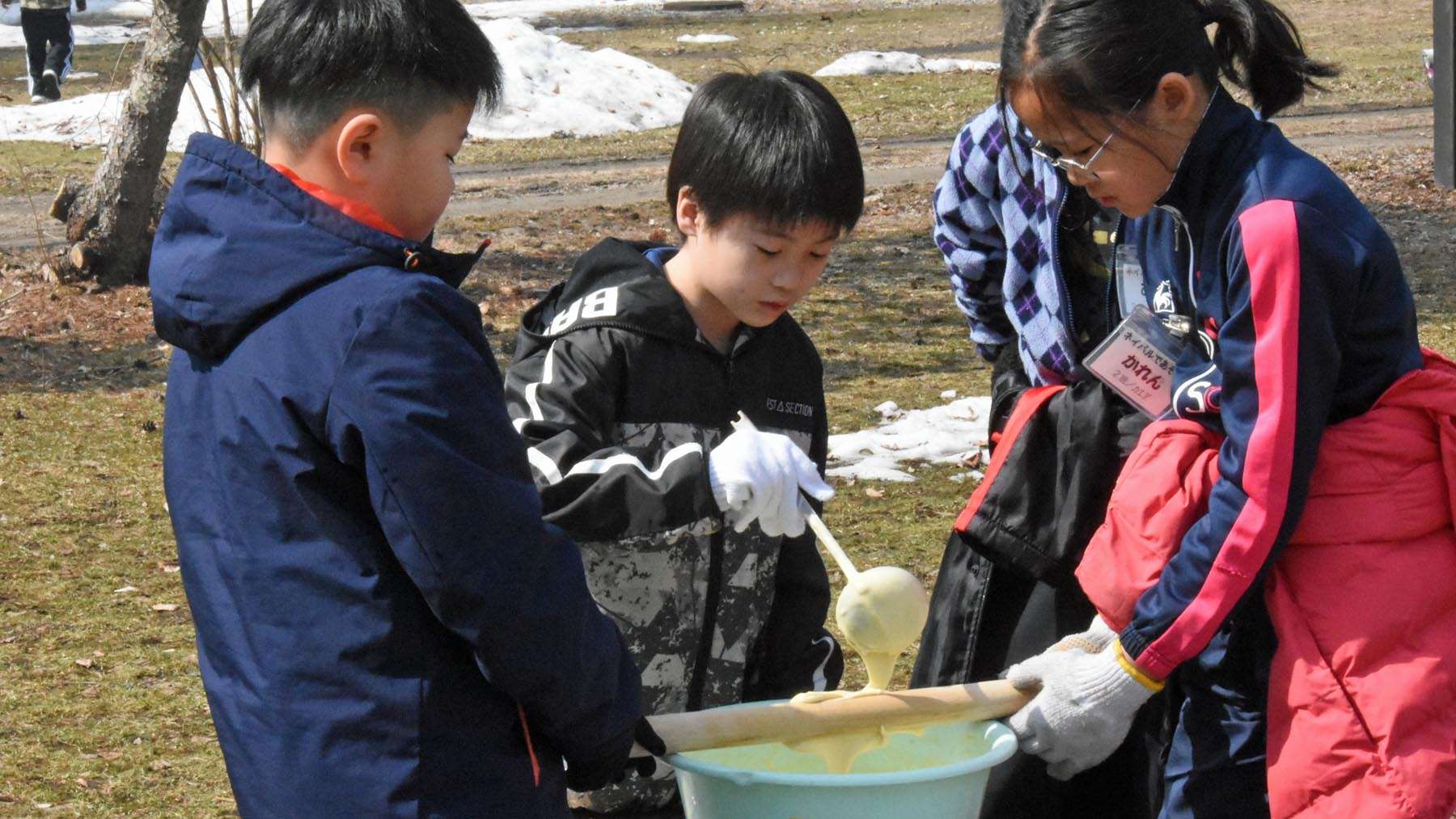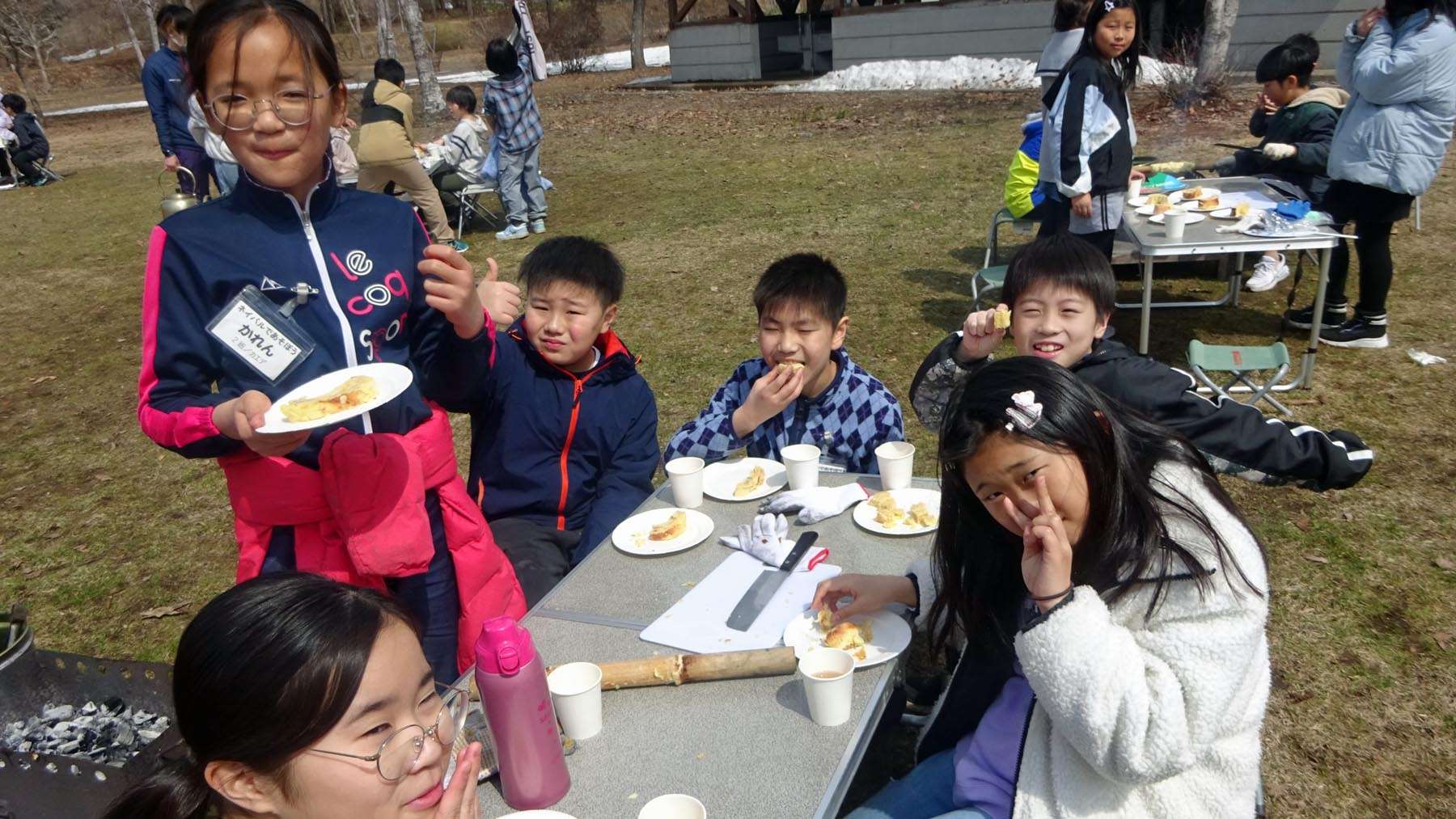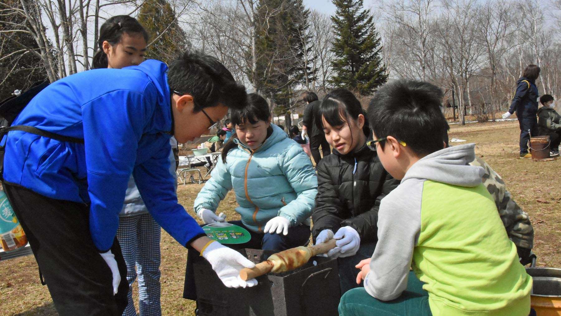 もうちょっとうまくできたかな??と完璧さを求める子もいましたが、「炭火」という難しい熱源を駆使して、立派なバウムクーヘンが出来上がりました。