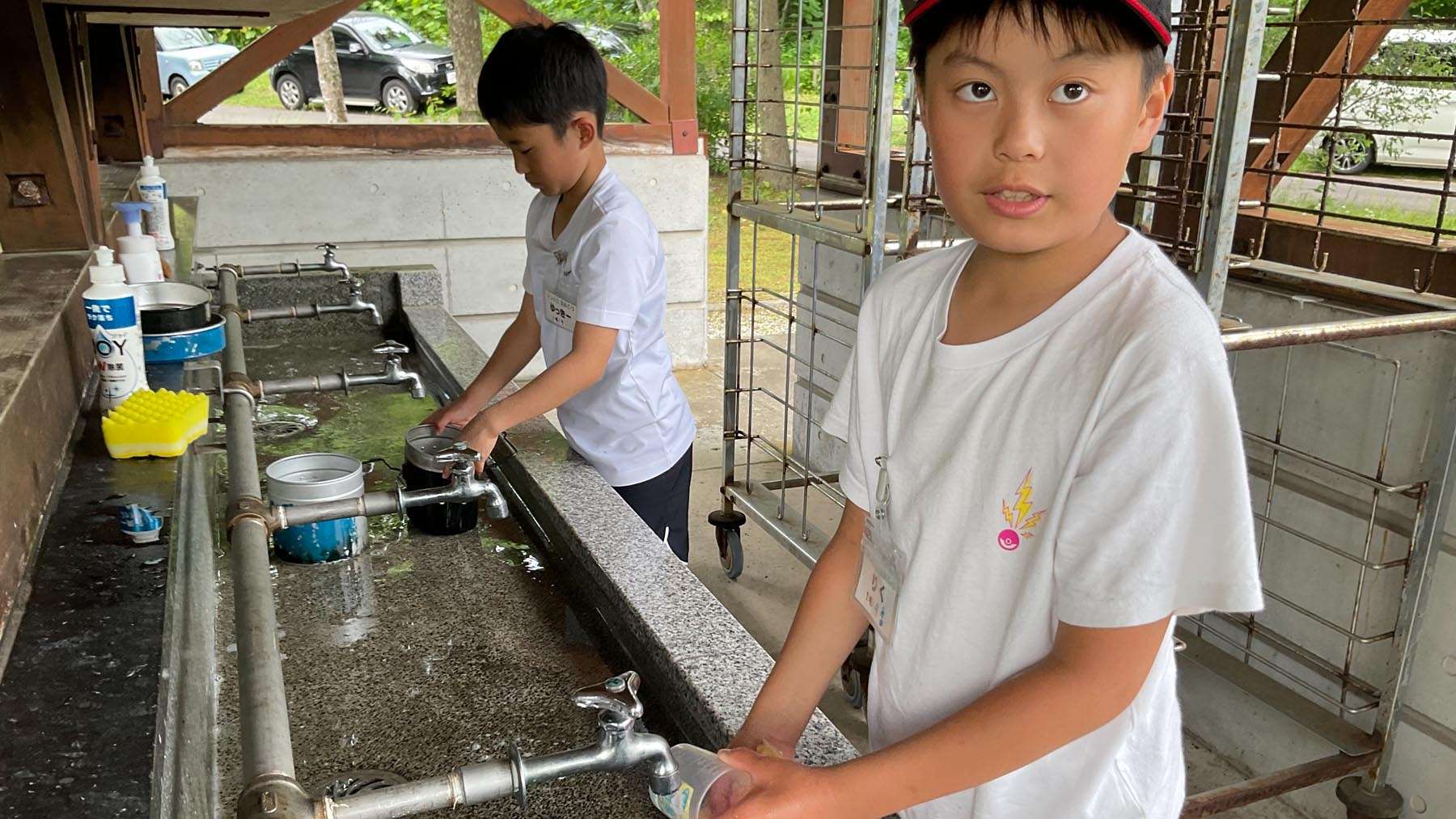 飯ごうでご飯を炊くので、炊事の準備をしたり、