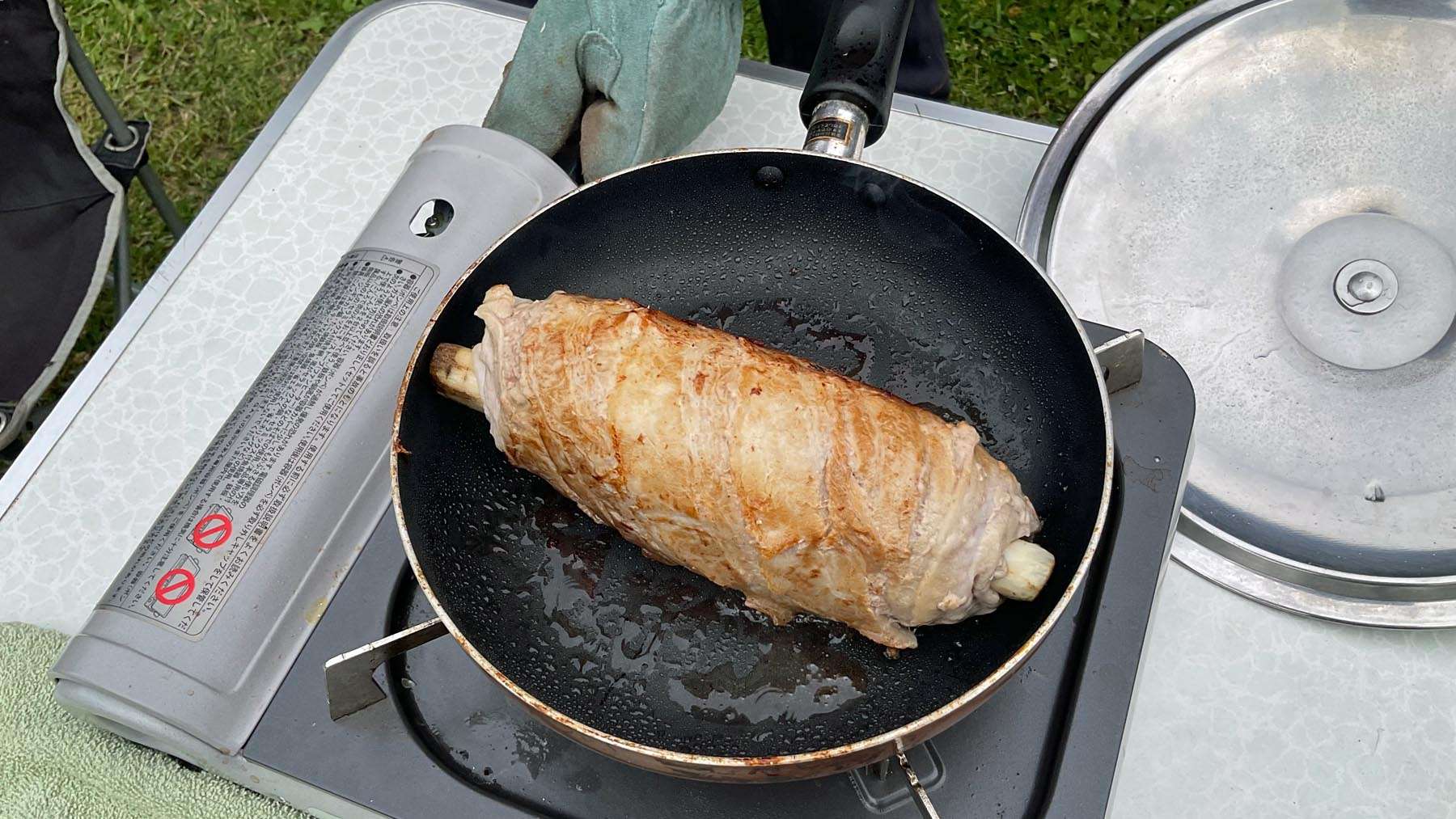今回のメインメニュー「マンガ肉」の準備をしています。
