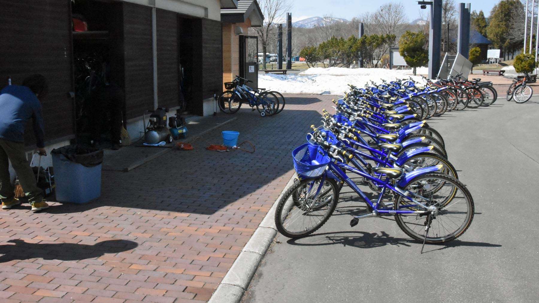 本格的なシーズンを前に、職員が空気を入れて、ライトを確かめ、ブレーキが効くかなって、1台1台、丁寧に確認をしています。